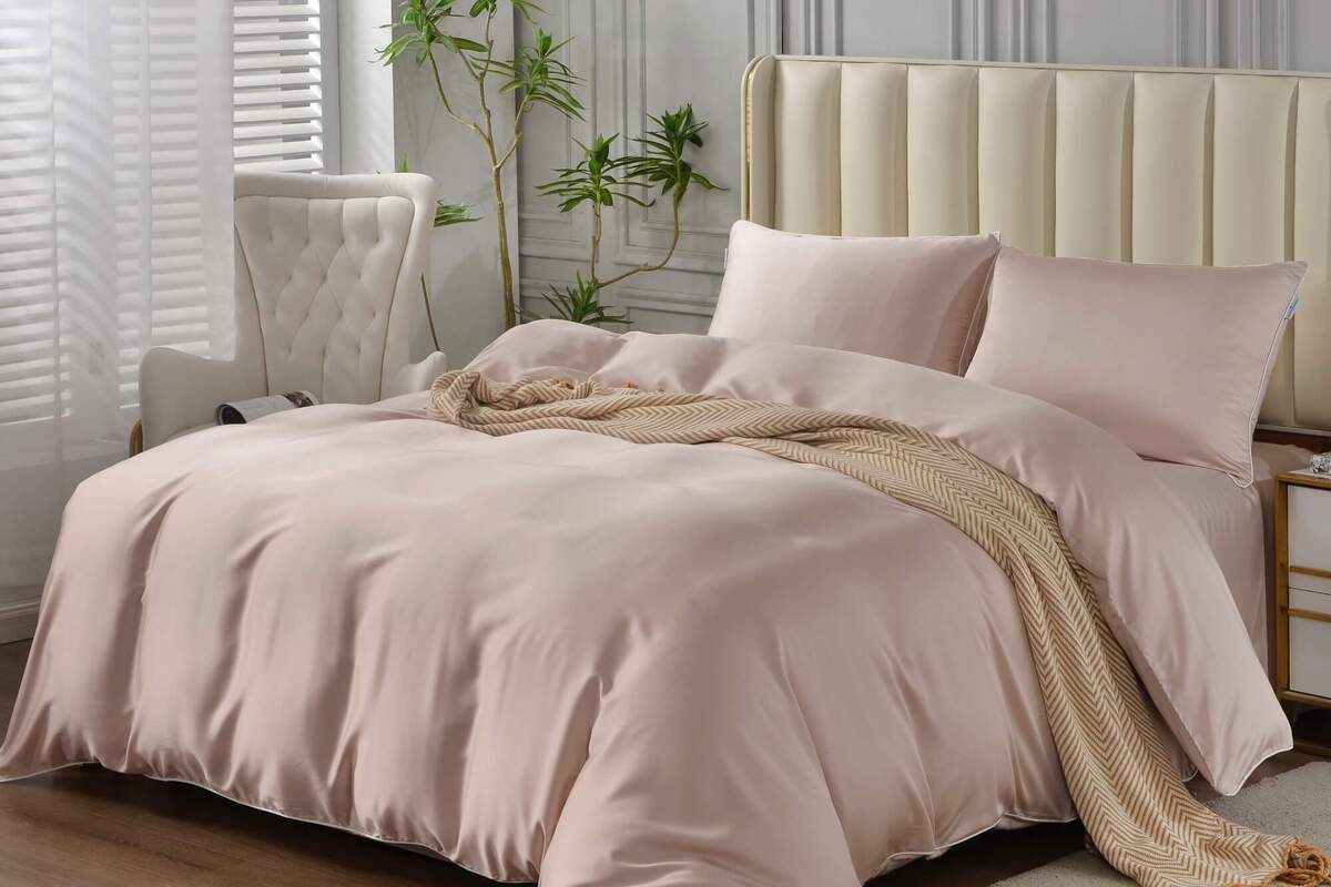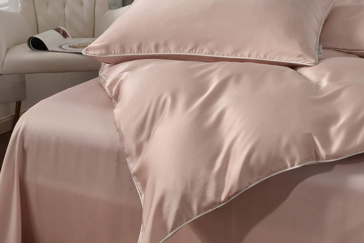 Для нашего фирменного постельного белья Elizabeth мы используем 100% тенсель (эвкалиптовое волокно) пряжи 60s, сатиновое плетение плотностью 300ТС. Комплект выполнен в однотонном дизайне с изящным белым кантом по краю пододеяльника и наволочек.